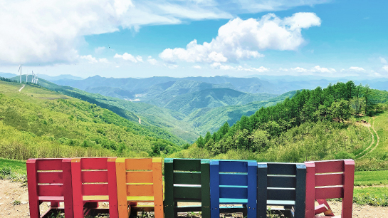 스카이워크에 올라 발밑으로 펼쳐진 산과 머리 위 하늘에서 받는 기운은 건강한 에너지를 충전해주는 듯한 느낌을 줍니다. 스카이워크를 즐긴 후에는 나무데크로 깔끔하게 조성된 산책로를 따라 발왕산 정상까지 올라가 보세요. 중간에 위치한 발왕수쉼터에서는 천연암반수를 마시며 목을 축일 수 있습니다.