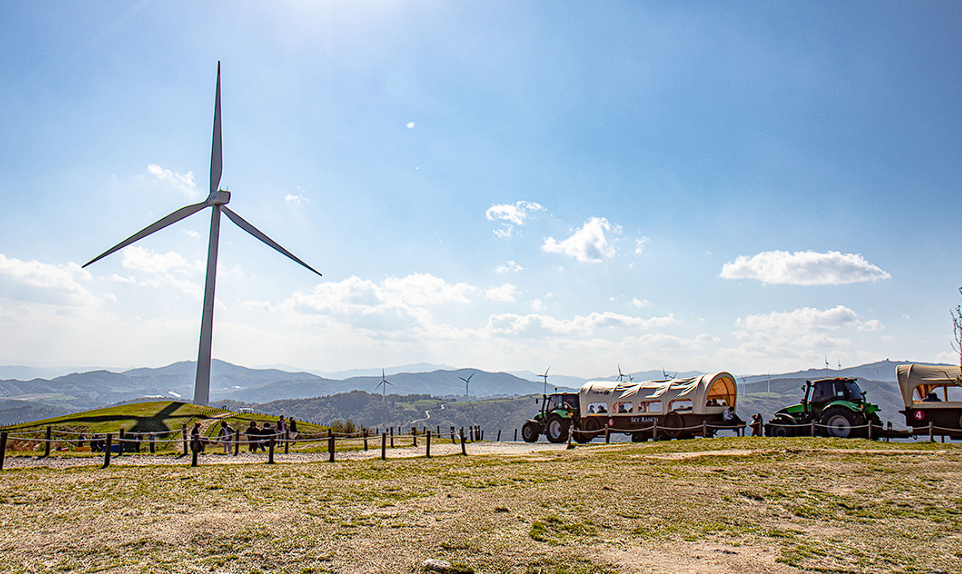 하늘마을 전망대까지 도보로 편도 1시간정도 걸리는데, 트랙터마차를 타면 편도 13분정도로 중간 정류장 3곳을 하차하여 중간에 걸어 내려올 수도 있습니다. 오래 걷는 것이 부담이라면 트랙터마차를 이용해서 힘들지 않게 둘러볼 수도 있습니다.