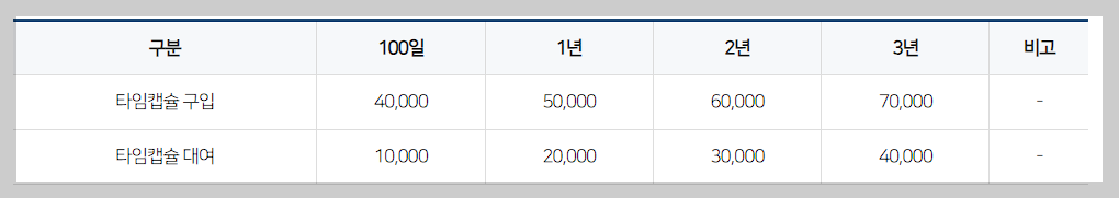 [ 타임캡슐 이용요금 안내 ]