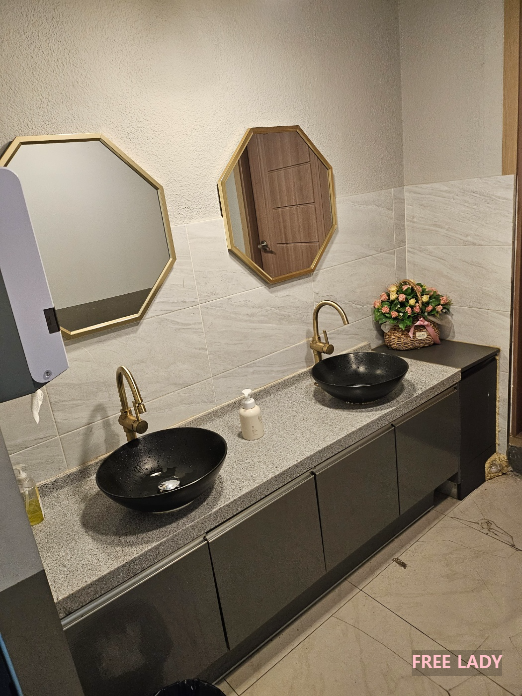 마지막으로 화장실 입구에 세면대가 깔끔하고 손세정제가 있어서