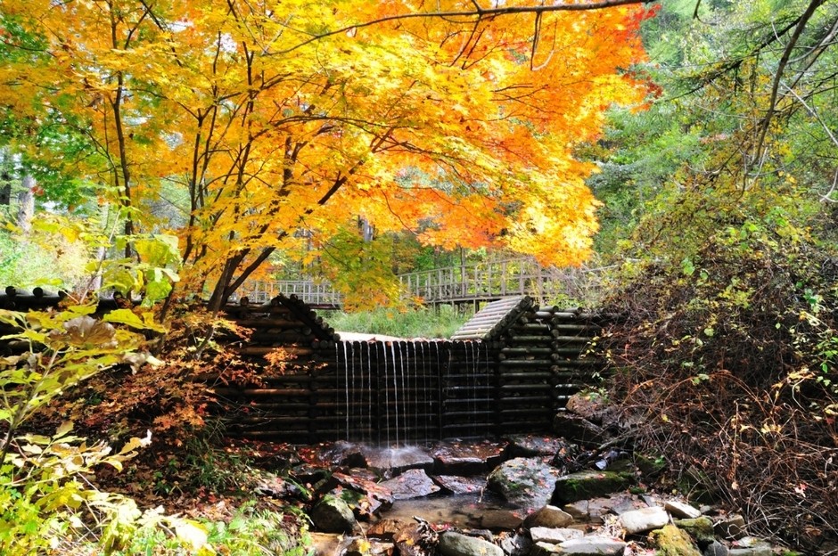 잣나무와 전나무 등 아름드리 침엽수가 우거져 낮에도 하늘이 잘 보이지 않는 독특한 풍경을 자랑합니다.