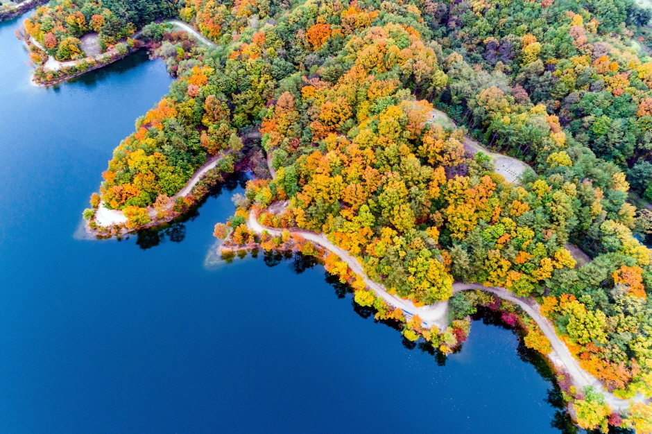 '망향의 동산'에서 출발하여 A코스는 호수를 반사하는 물그림자와 함께 즐길 수 있는 세 곳의 전망대와 아기자기한 조형물들이 자리해 있어 사진 찍기에도 좋습니다.