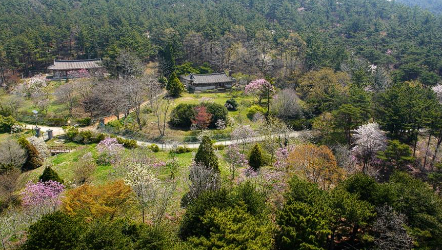 18만 평의 넓은 면적에 호랑가시나무, 목련, 동백나무, 단풍나무, 무궁화 등 국내 최다 식물종을 보유하고 있습니다. 특히 목련은 전 세계 1000분류군 중 871분류군을 보유하여 4월경 다양한 목련꽃을 감상할 수 있습니다. 결혼도 하지 않고 전 재산을 들여 수목원을 조성한 故 민병갈 설립자의 숭고한 정신은 많은 사람들에게 귀감이 되고 있습니다.