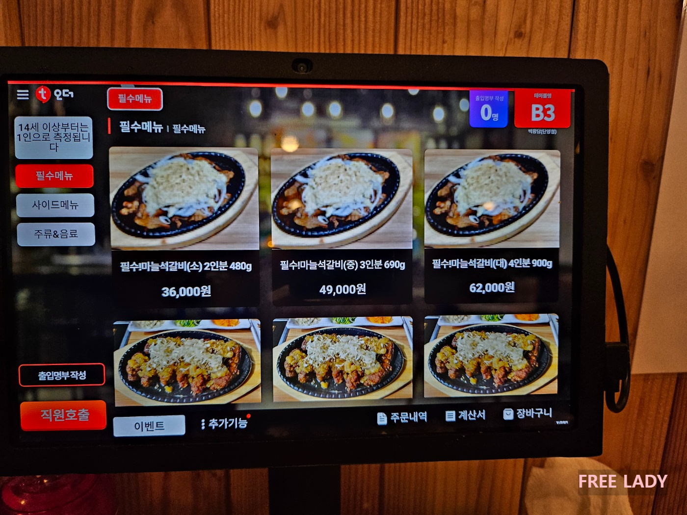 테이블에 마련된 태블릿으로 주문 완료