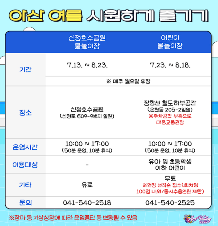 | 충남 아산 물놀이장 개장 안내 (2024) (0) | 2024.07.31 |