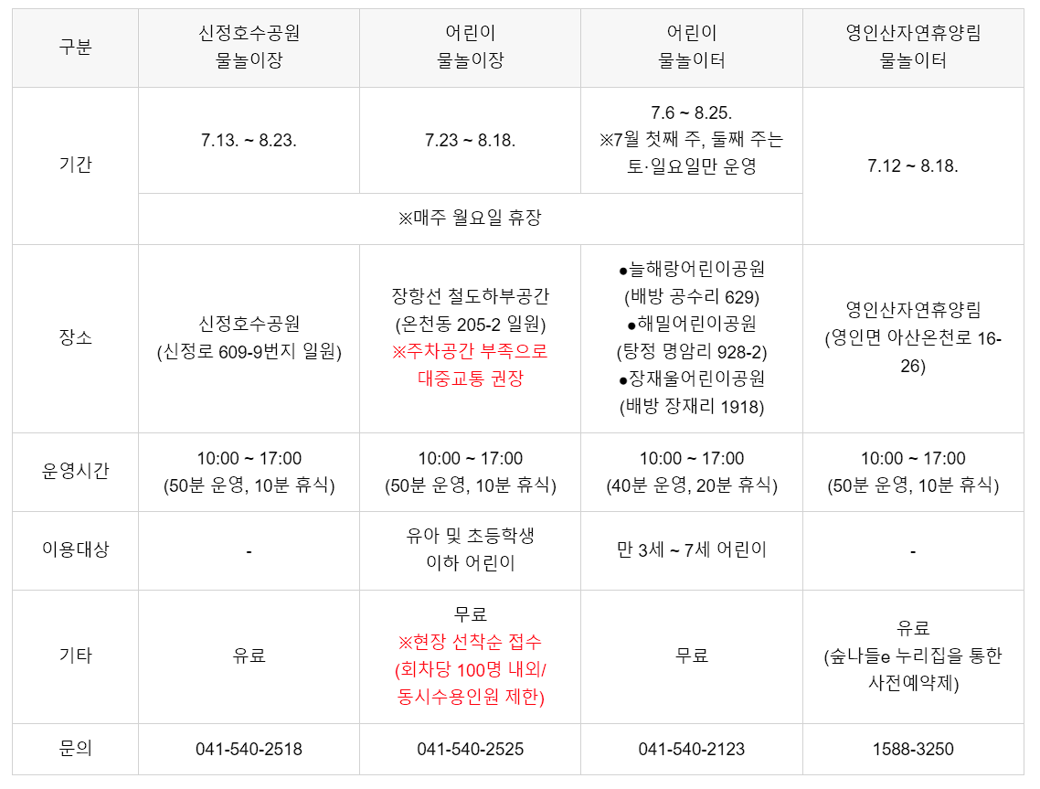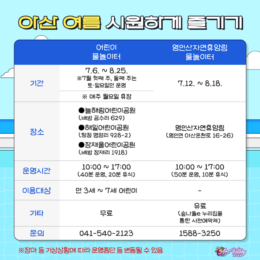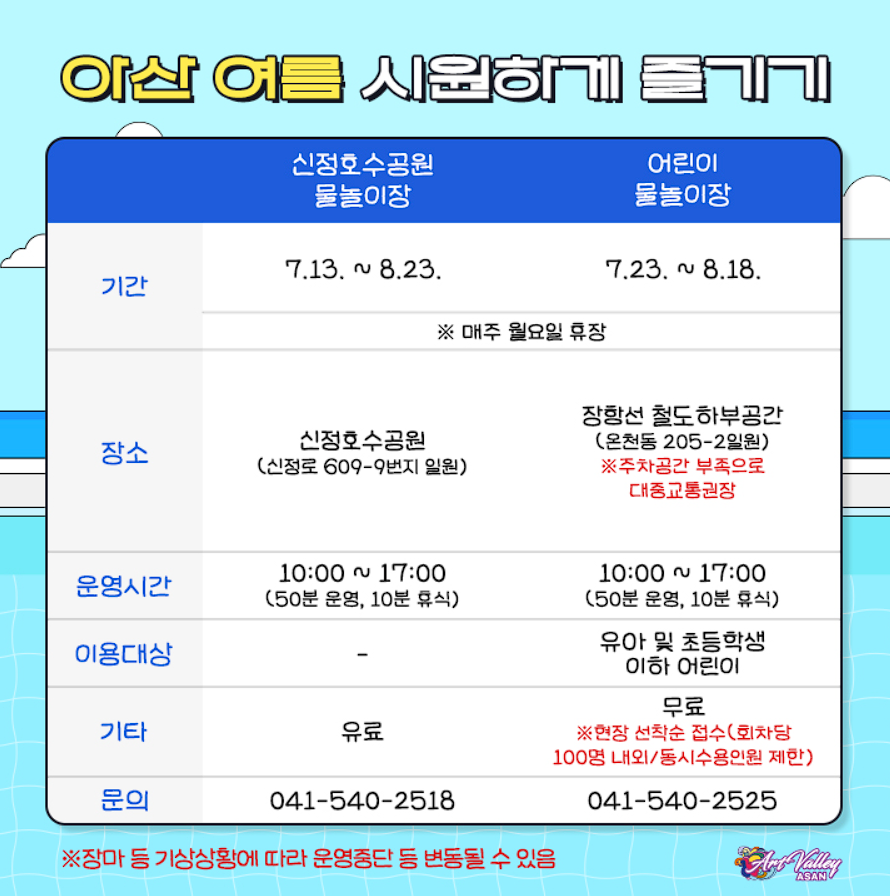 아산 물놀이장 개장 안내 (전체)