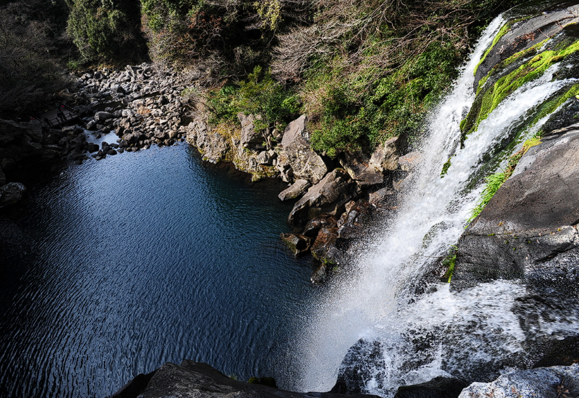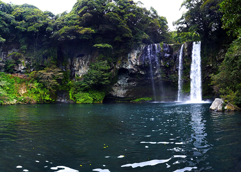 천제연 폭포는 한라산에서 시작된 중문천이 바다로 흐르며 형성된 폭포로, 중문관광단지 내에 위치합니다. 천제연 폭포는 3개의 폭포로 나뉘는데, 주상절리 절벽에서 천제연으로 떨어지는 제1폭포와 천제연의 물이 아래로 흐르며 형성된 제2, 3폭포가 있습니다. 제1폭포는 높이 22m, 천제연 수심 21m로, 건기에는 폭포수가 떨어지지 않지만 주상절리형 암벽과 에메랄드빛 연못이 아름다워 내외국인 모두가 카메라를 꺼내 듭니다. 1폭포 근처 암석동굴의 차가운 물은 병을 낫게 한다는 설이 있었으나 현재는 수영이 금지되어 진입할 수 없습니다.