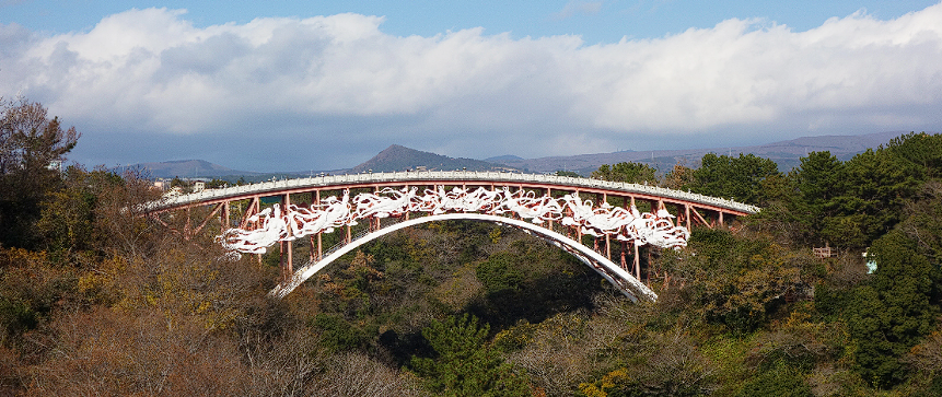 천제연 폭포는 한라산에서 시작된 중문천이 바다로 흐르며 형성된 폭포로, 중문관광단지 내에 위치합니다. 천제연 폭포는 3개의 폭포로 나뉘는데, 주상절리 절벽에서 천제연으로 떨어지는 제1폭포와 천제연의 물이 아래로 흐르며 형성된 제2, 3폭포가 있습니다. 제1폭포는 높이 22m, 천제연 수심 21m로, 건기에는 폭포수가 떨어지지 않지만 주상절리형 암벽과 에메랄드빛 연못이 아름다워 내외국인 모두가 카메라를 꺼내 듭니다. 1폭포 근처 암석동굴의 차가운 물은 병을 낫게 한다는 설이 있었으나 현재는 수영이 금지되어 진입할 수 없습니다.