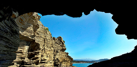 용머리 해안은 산방산 자락에서 해안가로 뻗어나가는 곳에 위치해 있으며, 마치 바다 속으로 들어가는 용의 머리를 닮았다고 하여 용머리 해안이라 불립니다. 수천 만년 동안 층층이 쌓인 사암층 암벽이 파도에 깎여 기묘한 절벽을 이루고 있습니다. 파도에 의해 움푹 패인 굴과 암벽의 흔적은 오랜 역사의 웅장함을 느끼게 합니다. 길이 30~50m의 절벽이 굽이치듯 이어지는 장관은 CF와 영화의 배경으로도 촬영된 바 있습니다.