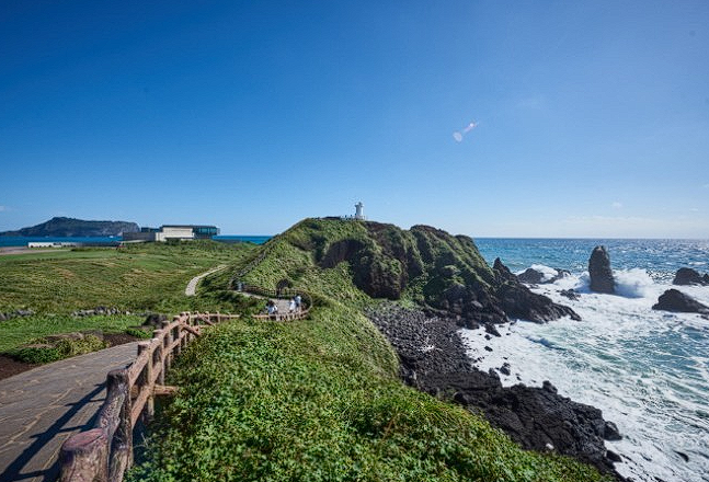 제주 동부 해안에 볼록 튀어나온 섭지코지는 성산 일출봉을 배경으로 한 해안 풍경이 일품입니다. 들머리의 신양해변 백사장, 끝머리 언덕 위 평원에 드리워진 유채밭, 여유롭게 풀을 뜯는 제주 조랑말들, 바위로 둘러친 해안 절벽과 우뚝 솟은 전설 어린 선바위 등, 이곳에서 전형적인 제주의 아름다움을 만날 수 있습니다.