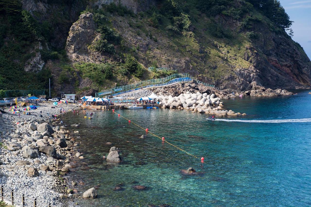 스노쿨링, 스킨스쿠버다이빙, 낚시, 캠핑, 보트투어 등 다양한 액티비티를 즐길 수 있는 해수욕장입니다. 매점에서는 스노쿨링 장비, 오리발, 구명조끼 등을 유료로 대여할 수 있어 준비가 부족해도 걱정 없습니다. 또한 샤워실과 화장실 등 부대시설이 잘 갖춰져 있어 물놀이와 캠핑에 편리합니다. 해변은 모래가 아닌 몽돌로 이루어져 있어 더 깨끗하게 보입니다. 물이 얕지 않아 위험할 수 있으니 주의가 필요합니다. ‘나 혼자 산다’ 김대호 아나운서의 스노쿨링 모습으로 더욱 유명해진 해수욕장입니다.