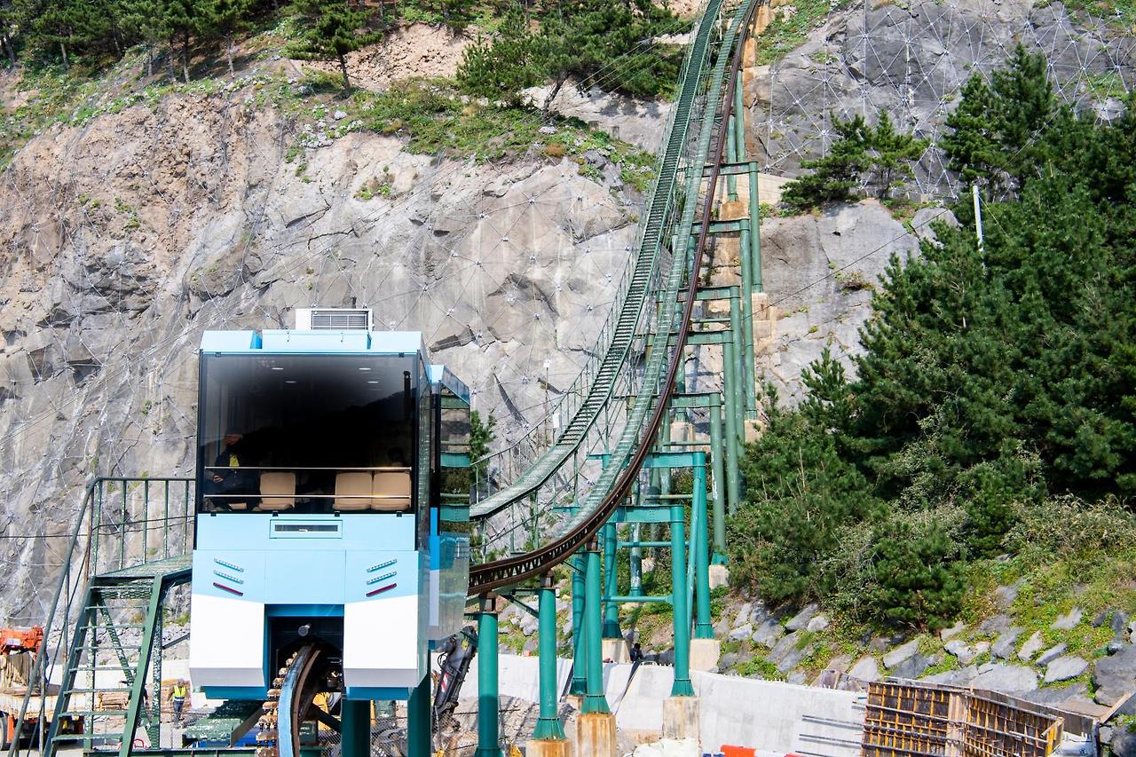 울릉도의 비경을 감상할 수 있는 관광 모노레일은 태하향목의 정수를 편안하게 즐길 수 있는 명소입니다. 총연장 304m의 레일에 20인승 카 두 대가 동시에 운행되며, 분당 50m의 속도로 산정까지 약 6분이 소요됩니다. 최대 39도의 등판각도 있지만 자동으로 수평을 유지해 안전하게 이용할 수 있습니다. 산정에서 하차 후 500m를 도보로 이동하면 울릉도항로표지관리소(태하등대)에 도착하며, 완만한 경사로 약 10분 정도 걸어가면 됩니다. 길가에는 동백나무와 후박나무가 자생해 시원한 그늘을 제공하며, 여름철 오징어 조업철에는 웅포해안과 대풍감향나무 자생지 앞에서 오징어잡이 어선들의 어화 풍경을 감상할 수 있습니다.