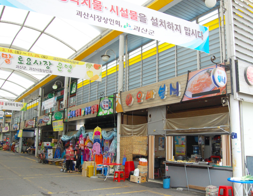 | ✅ 괴산전통시장 (구.산막이 시장) 안내 주소 : 충북 괴산군 괴산읍 동부리 570-14 문의 : 043-832-0250 운영시간 : 7시~19시 / 5일장 (매월 3일, 8일, 13일, 18일, 23일, 28일) 이용료 : - 주차 : 괴산전통시장 주차장 / 인근 공영주차장 - 무료 |