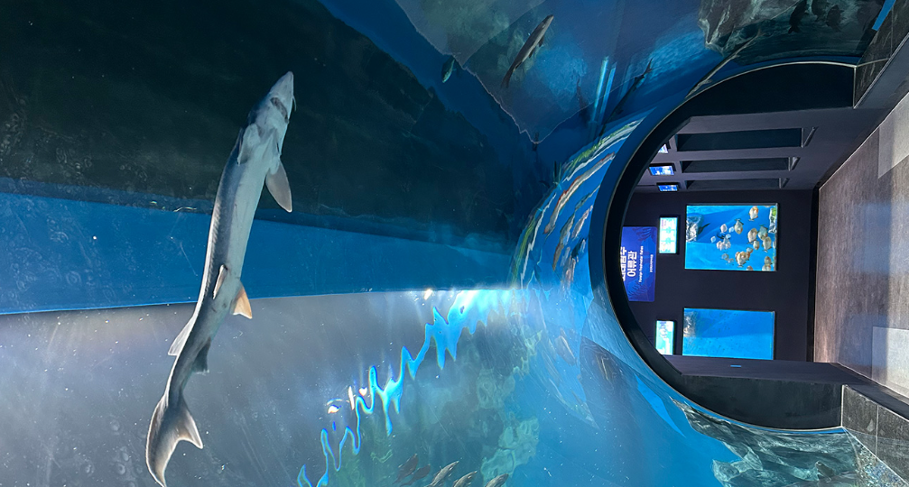 2024년 5월 16일에 개장한 신상 아쿠아리움은 깔끔한 외관이 돋보이는 곳입니다. 이곳의 하이라이트는 '해저터널'로, 대형 수조에서 칠갑상어와 잉어 등을 가까이에서 감상하며 사진을 찍을 수 있어 아이들과 함께 방문하기에 좋습니다. 관람을 마친 후에는 무료로 네컷사진을 찍을 수 있는 기념촬영 공간도 마련되어 있어 추억을 남기기에 안성맞춤입니다.
