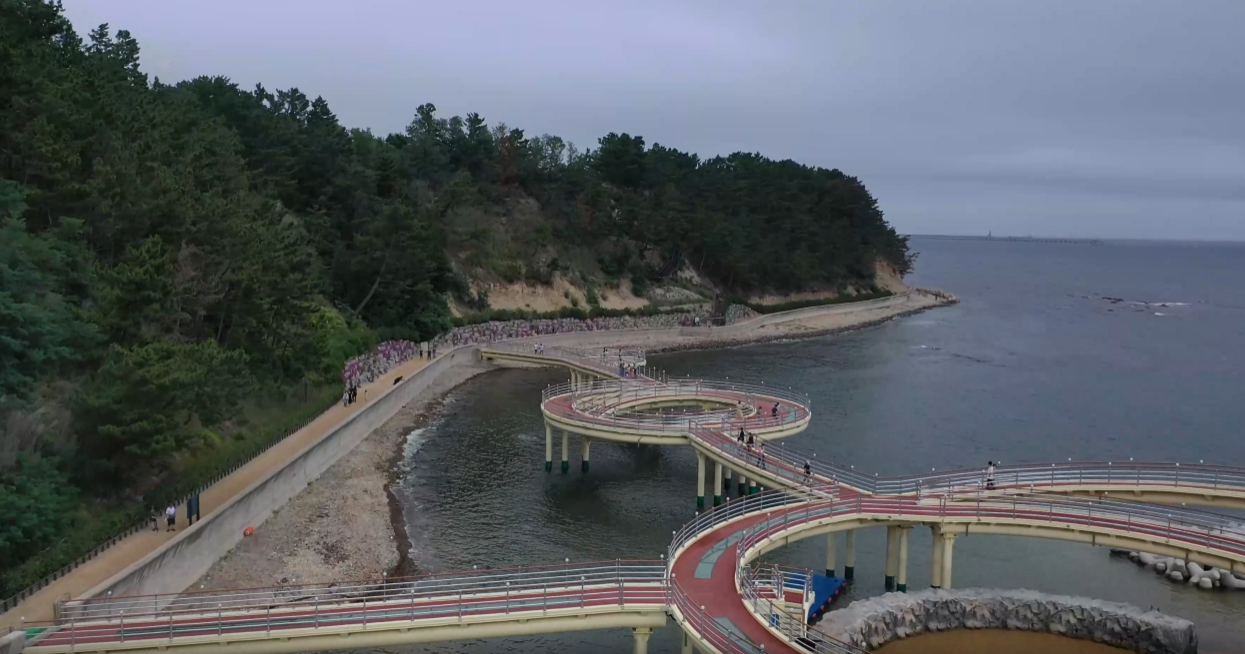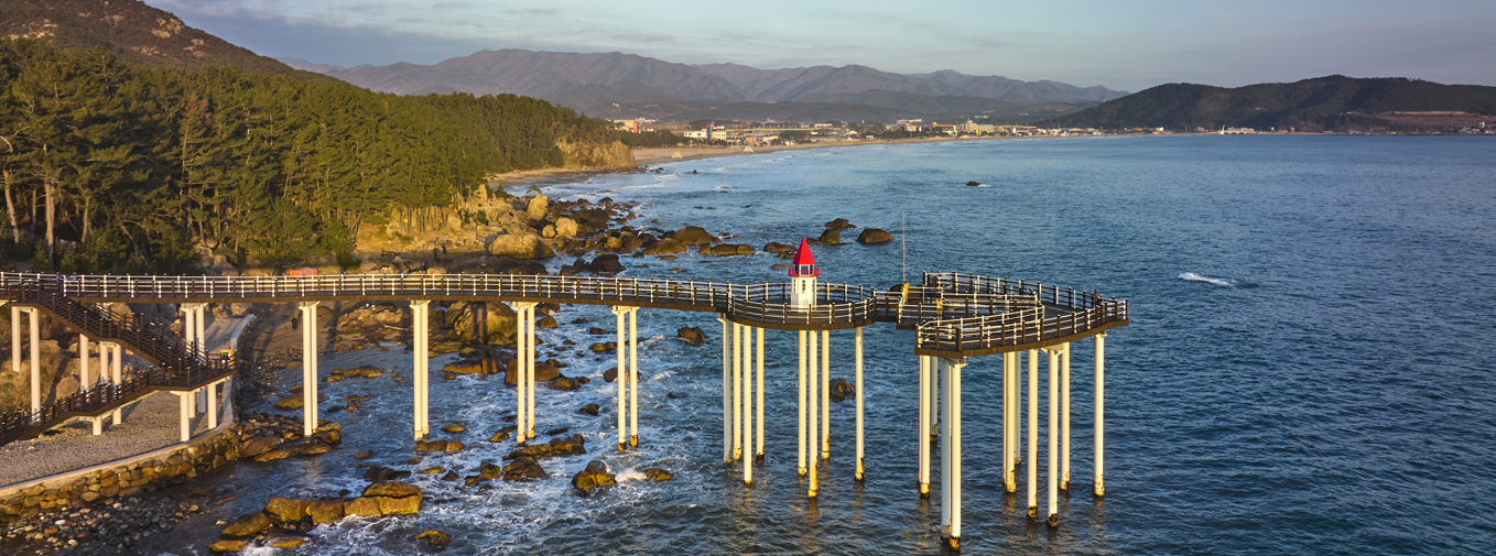 포항의 손꼽히는 관광지인 해상스카이워크는 평균 높이 7m, 총 길이 463m로 우리나라에서 가장 긴 해상 보도교입니다.