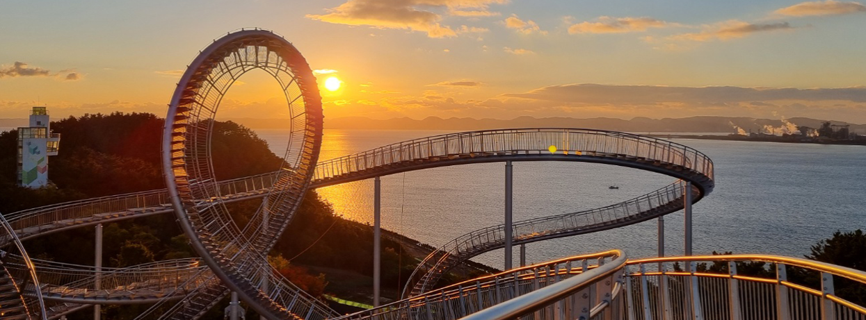 철로 그려진 우아한 곡선과 밤하늘을 수놓은 조명은 철과 빛의 도시 포항을 상징합니다. 360도로 펼쳐진 전경을 내려다보면, 포항의 아름다운 풍경과 제철소의 찬란한 야경, 그리고 영일만의 일출과 일몰까지 감상할 수 있어 정말 특별한 경험을 선사합니다.