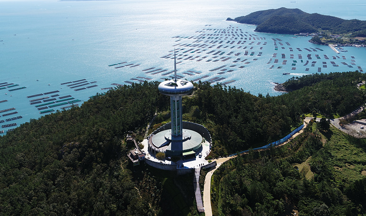 완도읍 동망산 정상 부근에 위치한 완도 타워는 높이 76m로, 완도의 아름다운 일출과 일몰, 그리고 완도항과 신지대교의 야경을 365일 감상할 수 있는 명소입니다. 타워 1층에는 특산품 전시장, 크로마키 포토존, 휴게공간 등이 마련되어 있으며, 2층에는 완도의 인물과 관련된 전시물과 포토존이 있습니다. 전망층에서는 다도해의 절경과 멀리 제주도까지 한눈에 볼 수 있는 쌍안경이 설치되어 있어 감동적인 풍경을 즐기실 수 있습니다. 밤에는 경관조명과 레이저쇼가 펼쳐져 더욱 환상적인 분위기를 자아냅니다.