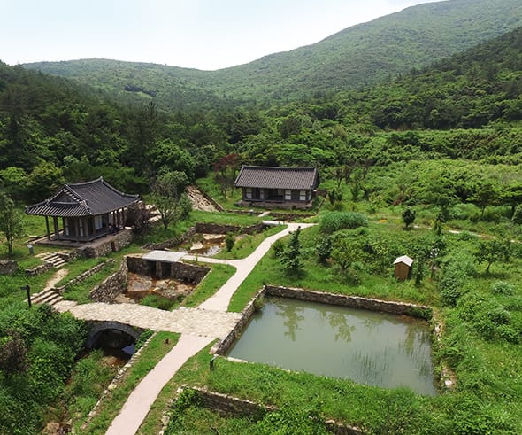 부용동 정원은 고산 윤선도가 직접 조성한 생활과 놀이의 공간으로, 조선시대 대표적인 별서정원입니다. 이곳은 세 구역으로 나뉘어 있는데, 거처 공간인 낙서재 주변, 산 중턱의 휴식공간인 동천석실 주변, 그리고 놀이의 공간인 세연정 주변입니다. 윤선도는 이곳에서 자연과 함께하는 어부의 소박한 생활을 창의적으로 그려내며, 당쟁으로 시끄러운 세상과 떨어진 자신의 낙원에서 풍류를 즐겼습니다.