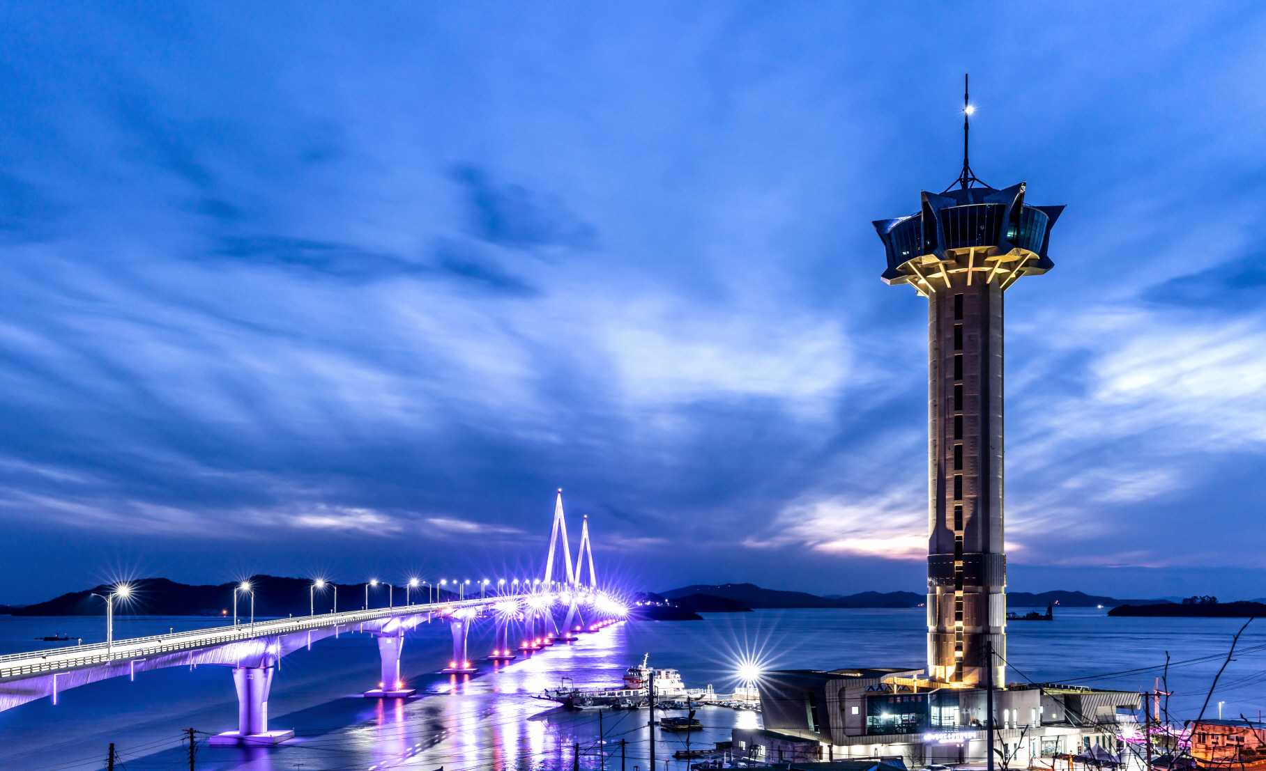 전남에서 가장 높은 111m의 칠산타워 전망대는 영광군 11개 읍면이 하나로 화합한다는 의미를 담고 있습니다. 1층에는 여객대합실, 매점, 수산물판매센터가, 2층에는 음식점과 회센터가 위치해 있으며, 3층에 자리한 전망대는 이곳의 하이라이트입니다. 전망대에 오르면 광활한 칠산 앞바다와 주변의 아름다운 육지가 한눈에 들어와 절로 감탄하게 됩니다.