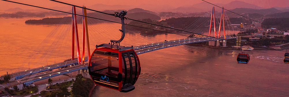 국내 최초로 역사의 현장에 개통된 명량해상케이블카는 이순신 장군의 명량대첩 승전지인 울돌목 해협 위를 가로지르며 해남과 진도를 연결합니다. 약 1km 구간에서 울돌목의 신비로운 회오리를 감상하고, 그날의 감동을 되새길 수 있습니다. 또한, 다도해의 아름다운 낙조와 진도대교가 어우러진 환상적인 파노라마 뷰를 감상하며 힐링할 수 있는 특별한 경험을 제공합니다.