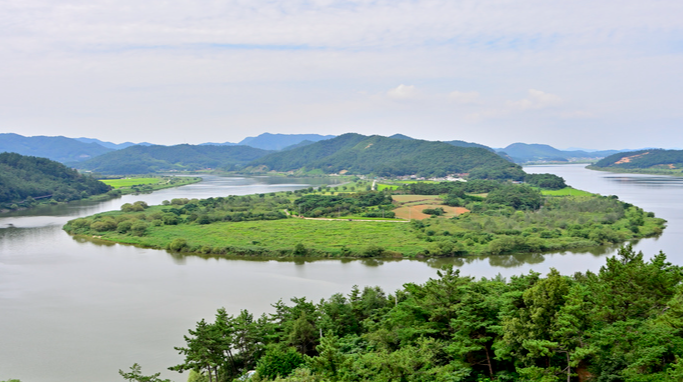 담양 용추봉에서 시작된 영산강이 목포로 흐르기 전 U자 모양으로 굽이치는 곳에 위치한 나주의 느러지 마을은 한반도 지형과 닮아 관광 명소로 유명합니다. 4층 높이의 느러지 전망대에 올라가면 영산강의 절경과 한반도 형상을 한눈에 감상할 수 있으며, 휴식을 취하기에도 좋습니다. 특히 6월 중순부터 7월까지는 전망대를 둘러싼 공원에 수국이 만개해, 자전거 길 양쪽으로 펼쳐진 형형색색의 꽃길이 장관을 이룹니다.