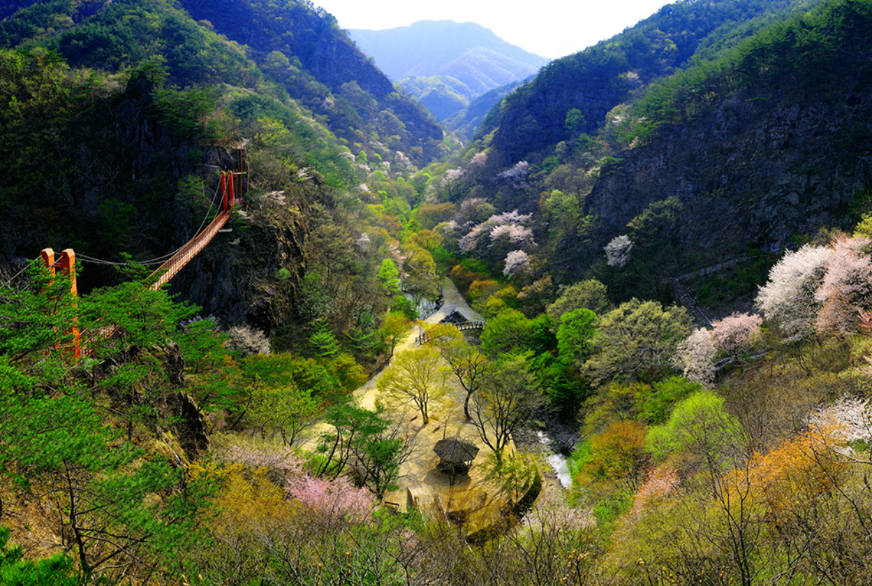 채계산출렁다리는 길이 270m, 높이 75m에 달하는 국내 최장 무주탑 현수교로, 발아래로 펼쳐지는 풍경과 함께 아찔한 스릴을 느끼실 수 있는 명소입니다. 다리 위에서 바라보는 순창의 전경은 탁 트인 시야와 함께 강과 산이 어우러진 절경을 감상할 수 있어, 사진 촬영 명소로도 인기입니다.