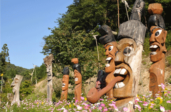 추령장승촌은 전통 장승문화가 살아 숨 쉬는 마을입니다. 마을 곳곳에 세워진 다양한 장승들이 이색적인 풍경을 자아내며, 장승 제작 과정을 직접 볼 수 있는 체험도 마련되어 있습니다. 옛날 마을의 수호신 역할을 했던 장승 이야기를 들으며 전통문화를 가까이서 느낄 수 있는 공간입니다.