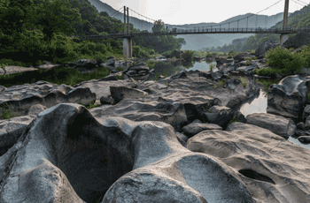 용궐산 하늘길은 산 능선을 따라 조성된 데크길로, 자연 속에서 여유롭게 산책하며 멋진 풍경을 감상할 수 있는 코스입니다. 특히 장군목은 맑은 강물과 기암괴석이 어우러져 수려한 경관을 자랑하며, 여름철 물놀이 장소로도 유명합니다. 물가에 앉아 시원한 강바람을 맞으며 휴식을 취하면 도심 속 피로가 말끔히 해소됩니다.