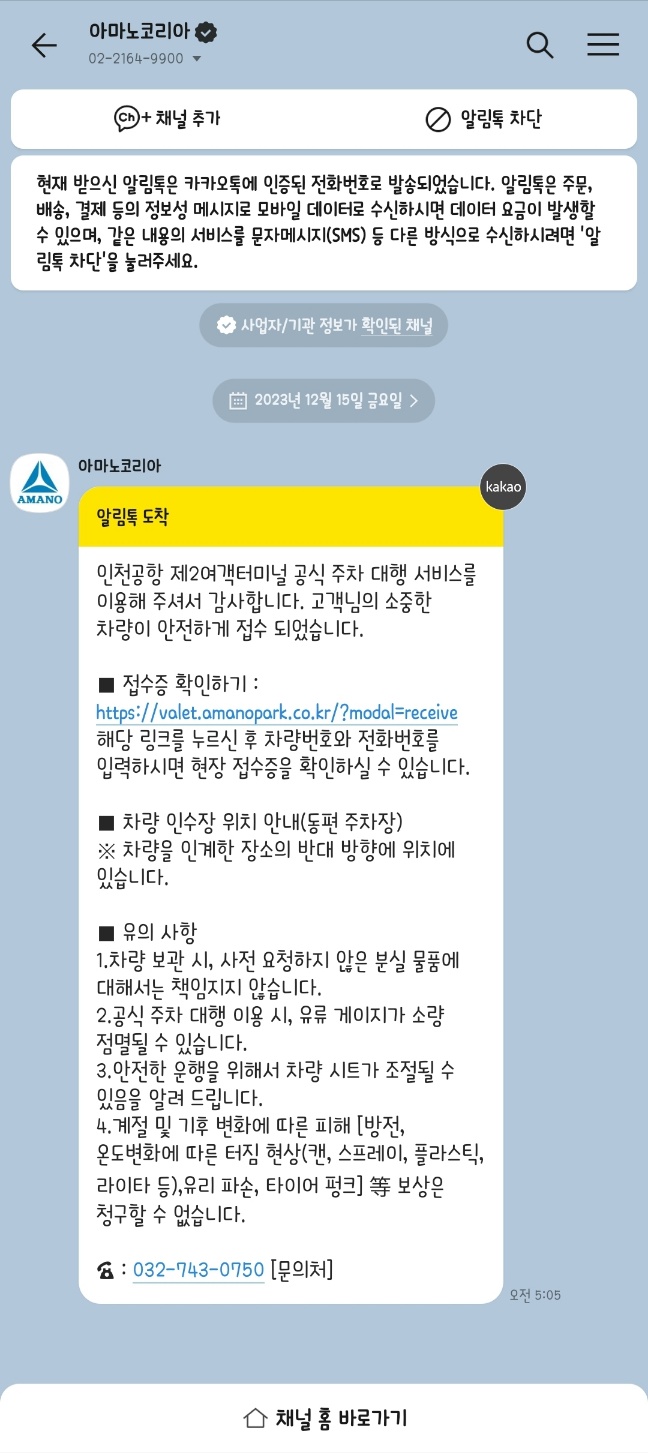 [ 인천공항 제2여객터미널 공식 주차대행 아마노코리아 ]