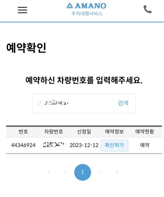 예약후에 카톡이나 문자로 확인 메세지가 오지 않으니 차량번호로 예약 확인하면 됩니다.