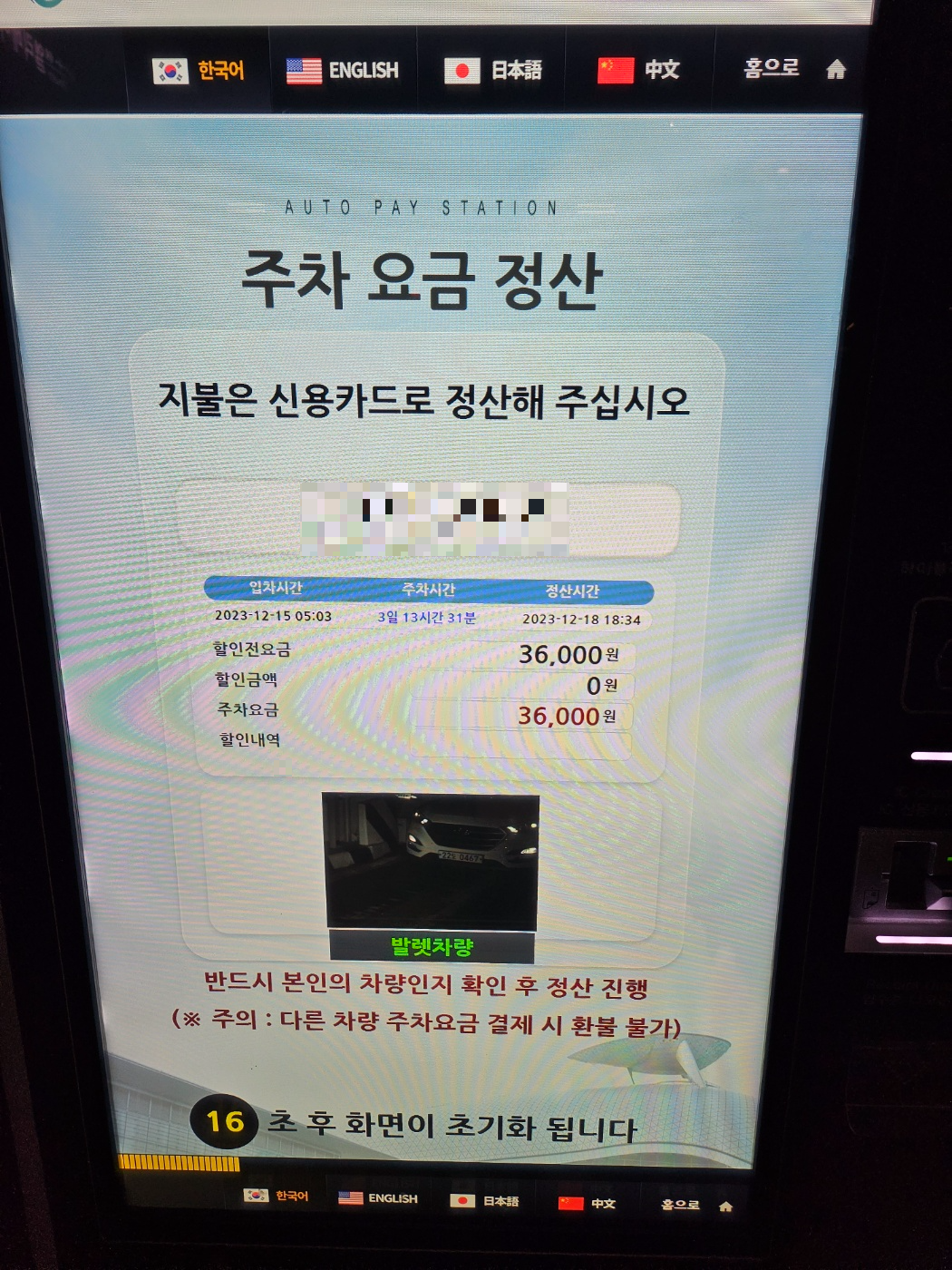 키오스크로 주차 요금을 정산이 가능하니 출차전에 미리 하시는게 편합니다.