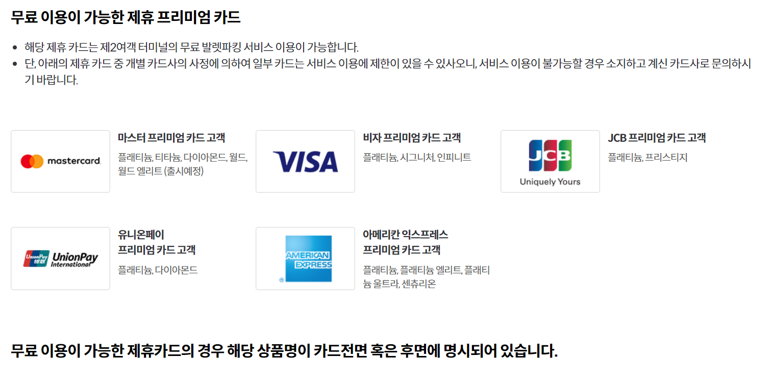 우선 무료 발레파킹 혜택이 있는 카드가 있는지 확인합니다.