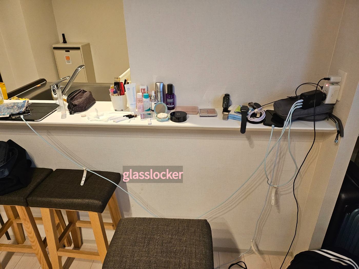 화장대가 따로 없어서 아일랜드 식탁?! 좁은 선반에 화장품을 놓고