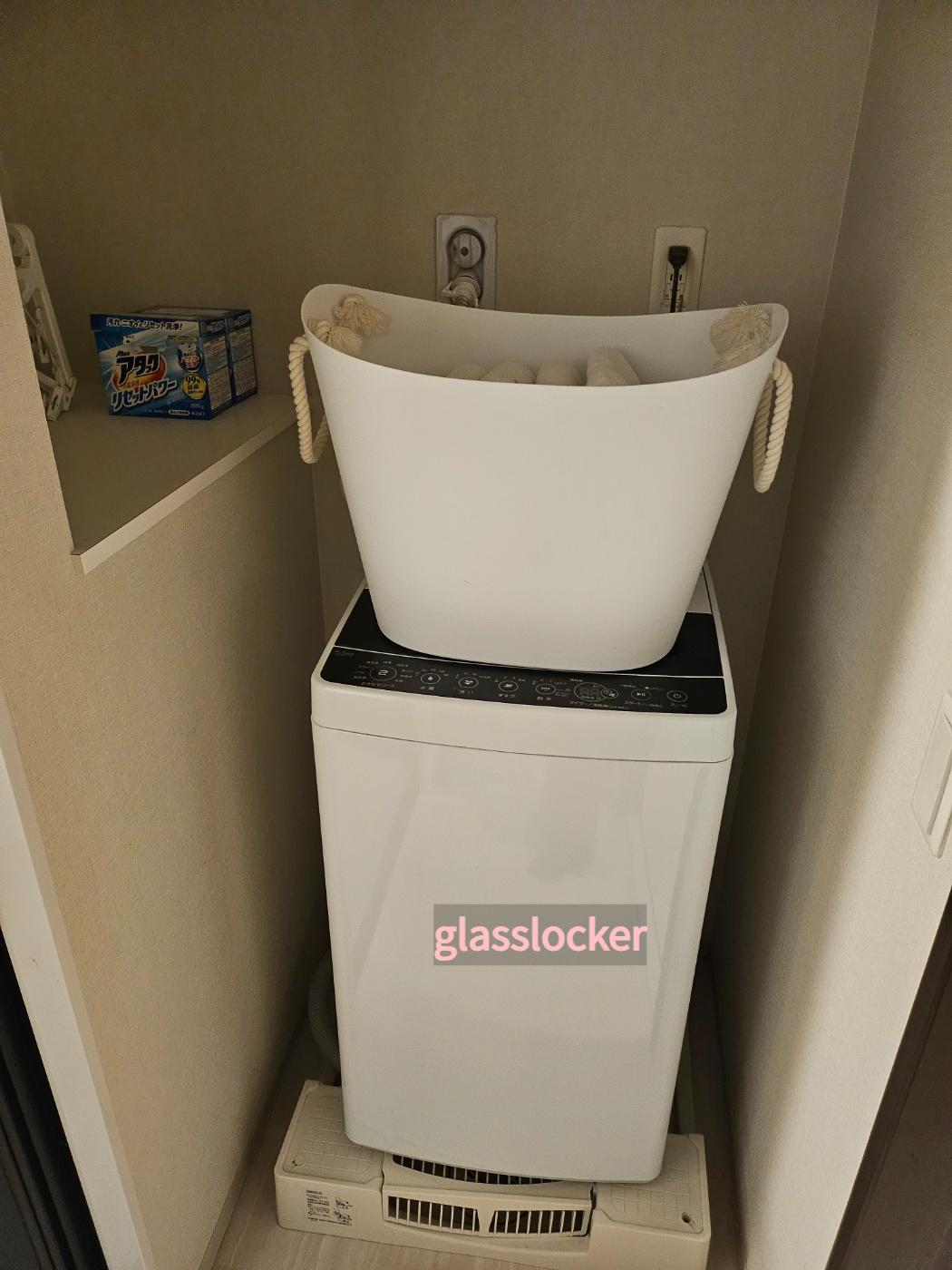 욕실 옆에는 세탁기와 여유분의 수건, 세탁 세제, 빨래 건조대가 준비되어 있습니다.