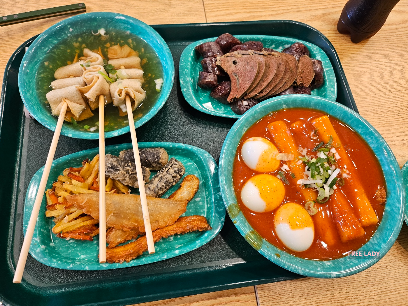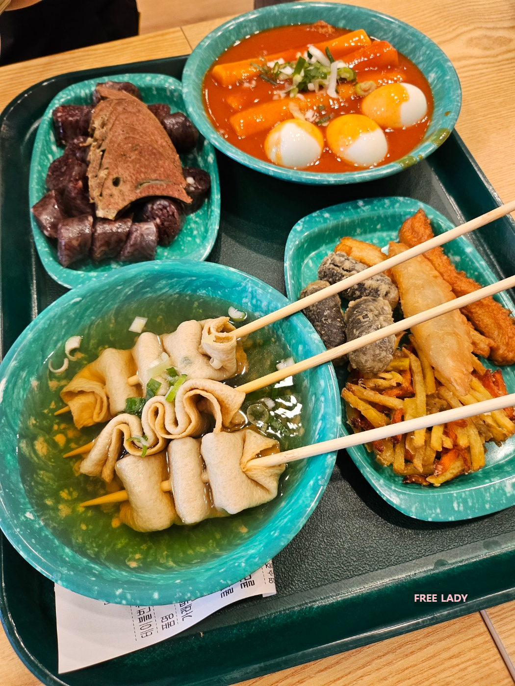 오뎅도 그냥 먹다가 떡볶이 소스에 한 입 먹고,