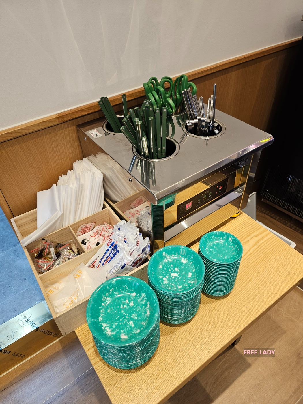 집게, 가위, 수저, 그릇은 셀프바에서 이용하면 됩니다.