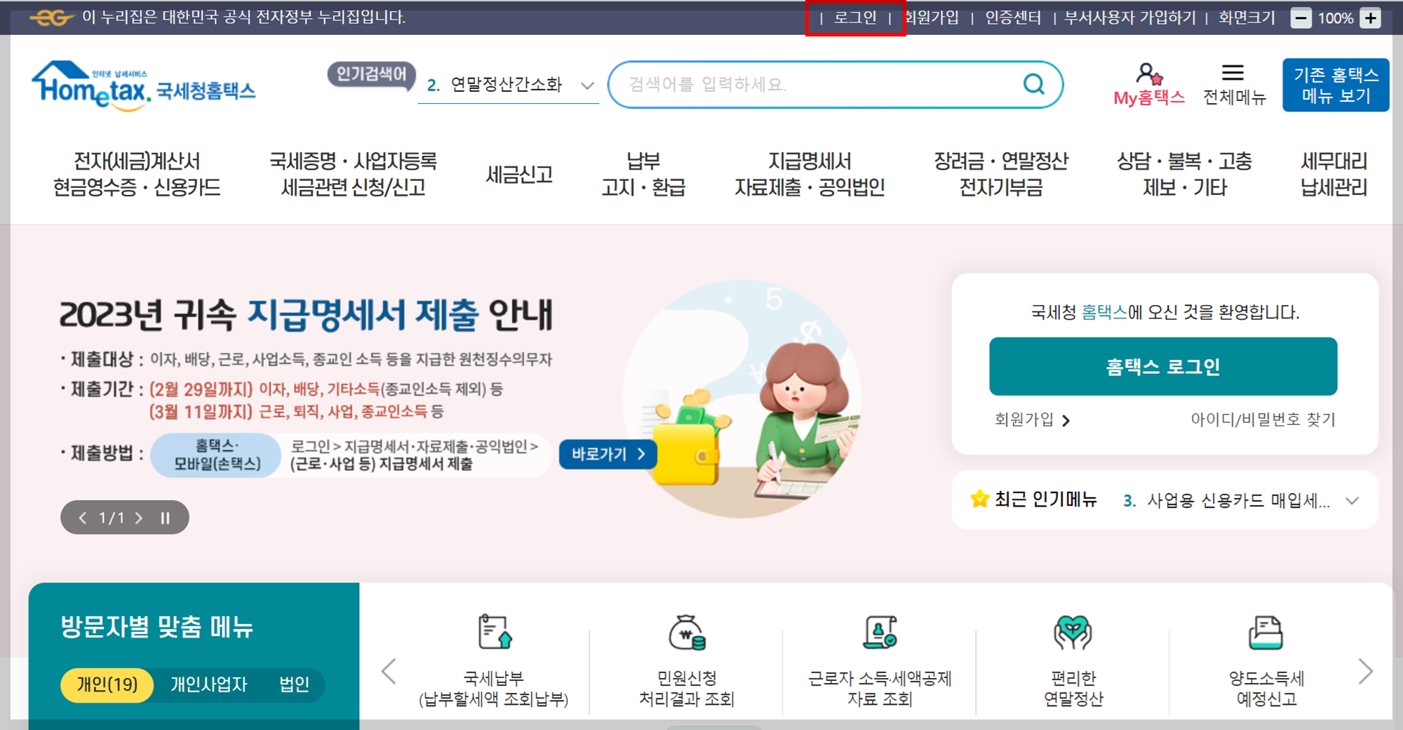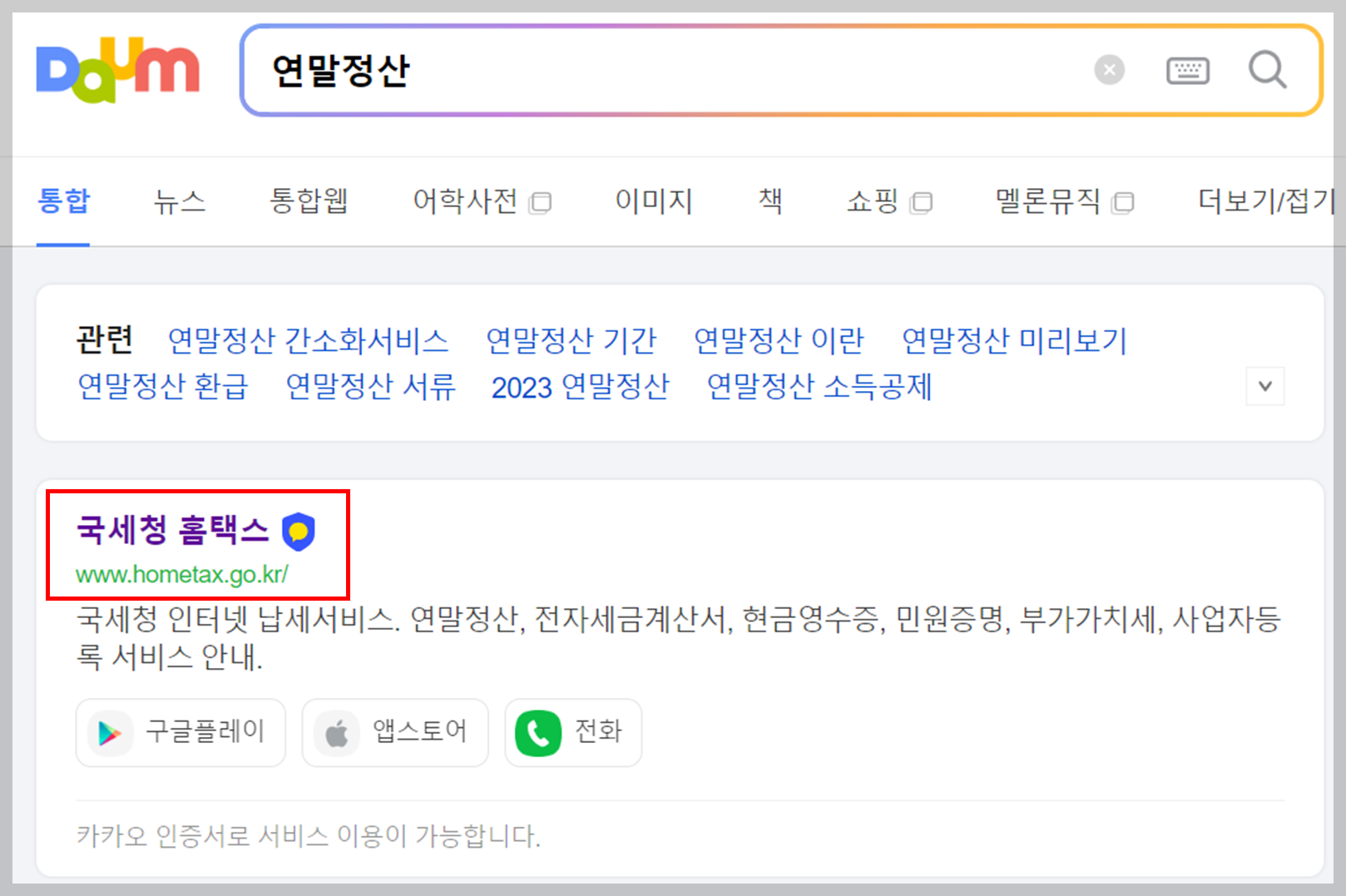 ▶ 연말정산 으로 검색 - 국세청 홈택스 클릭합니다.