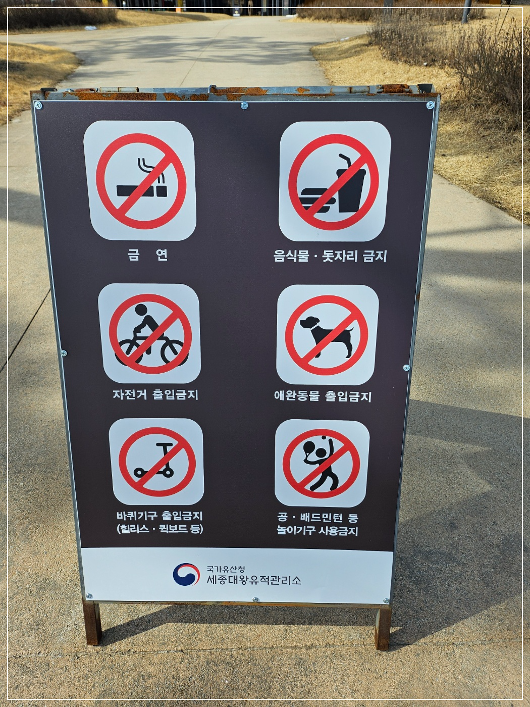 금연, 음식물 · 돗자리 금지, 자전거 및 애완동물 출입금지,