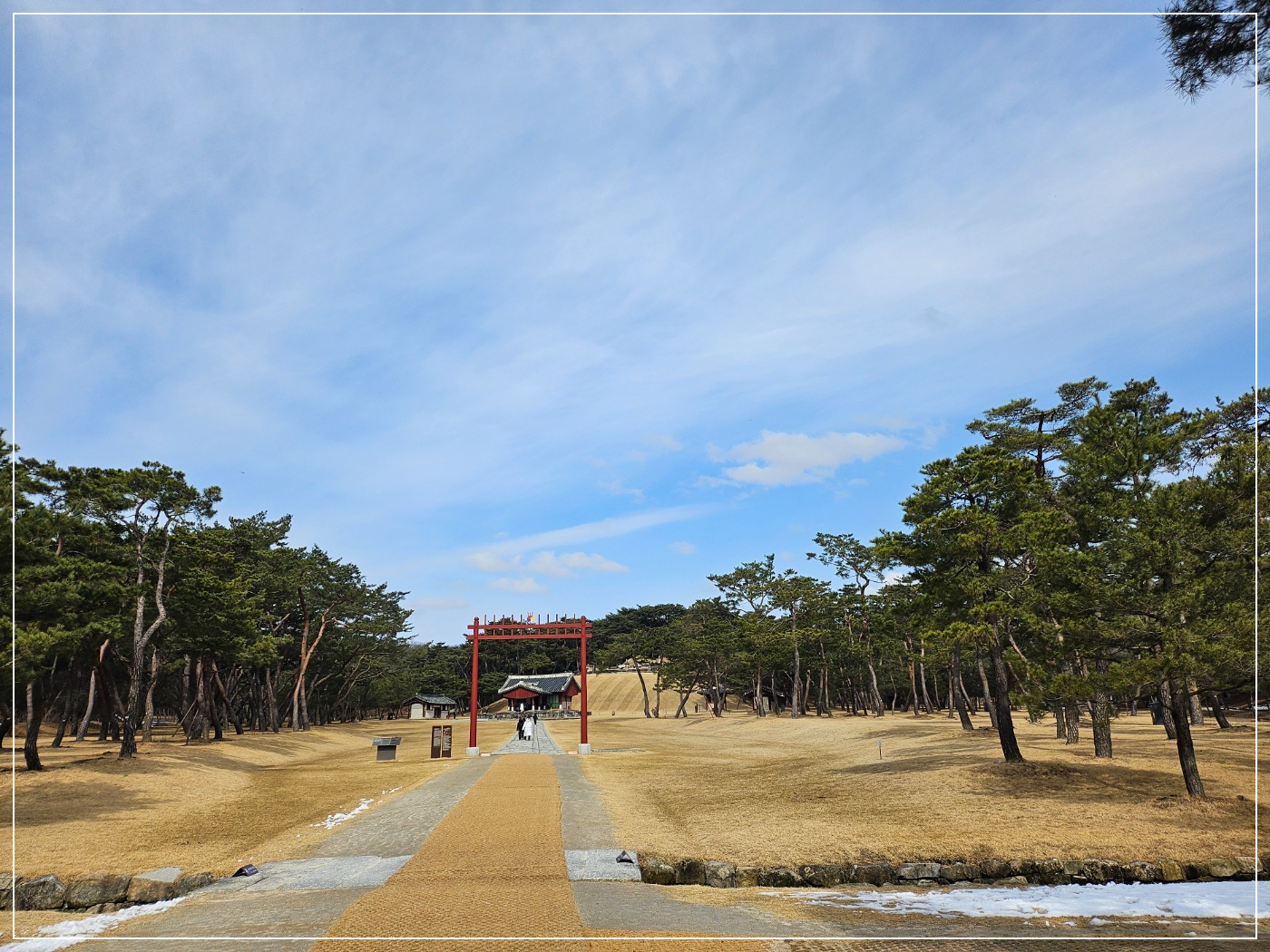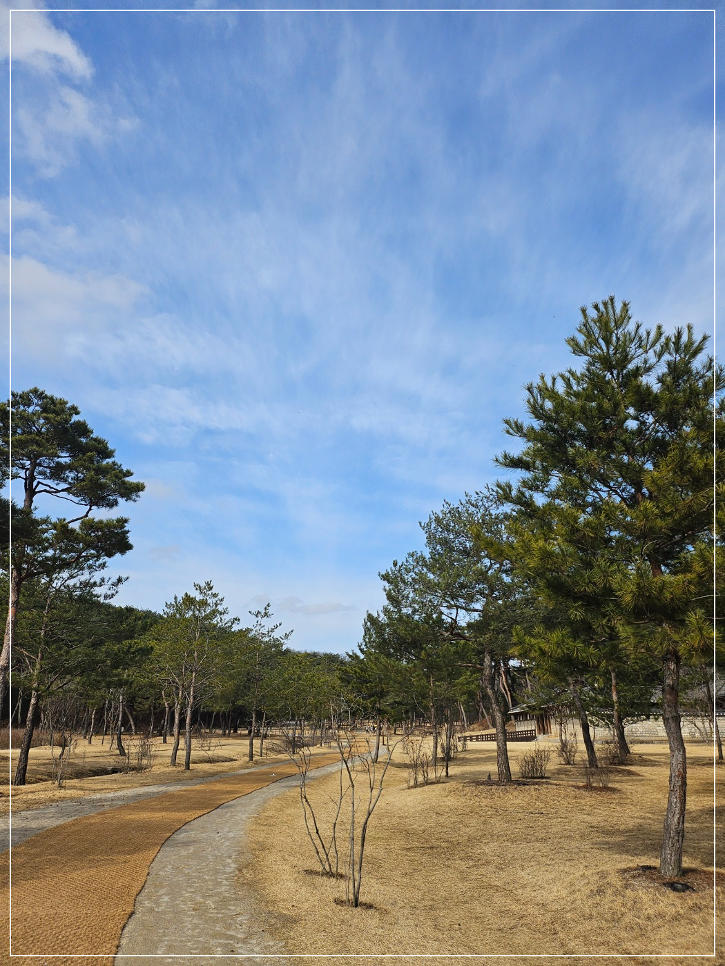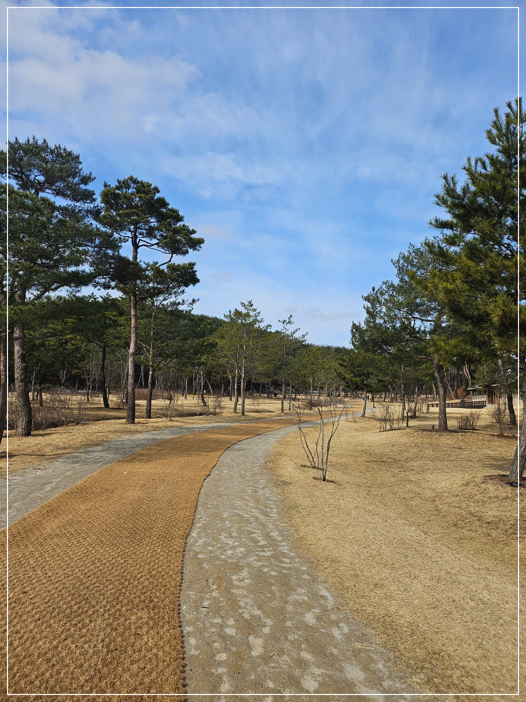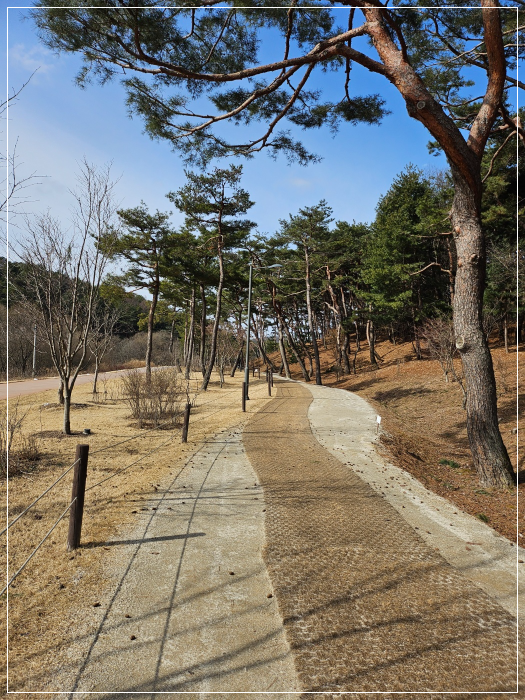 긴 산책로를 걷지만 양옆의 나무와 하늘의 구름을 보다 보면 전혀 지루하지 않게 느껴집니다.