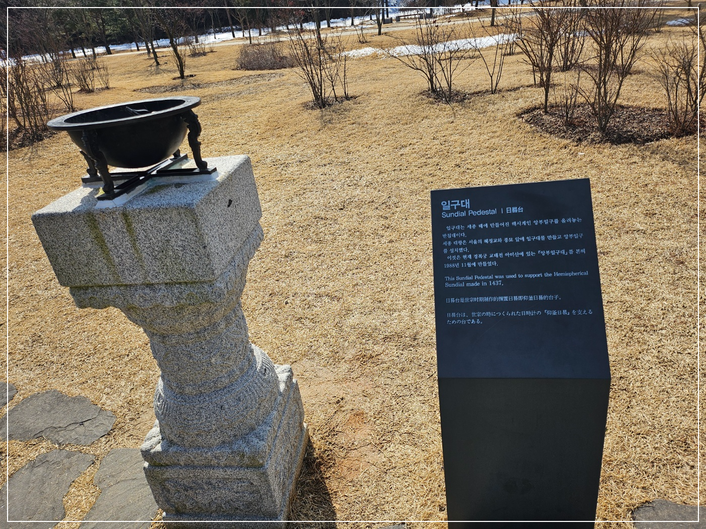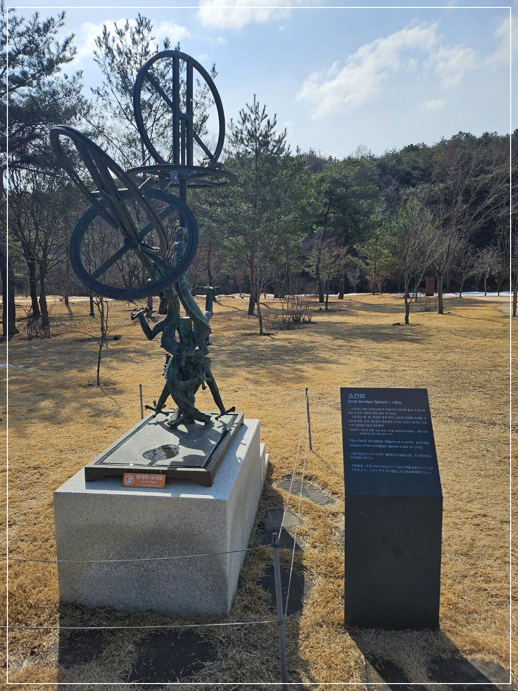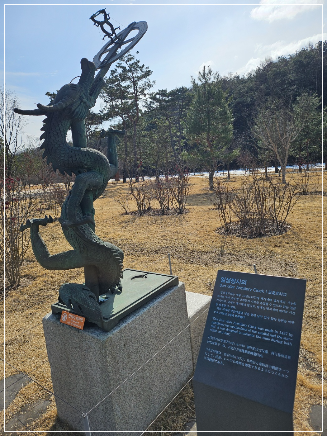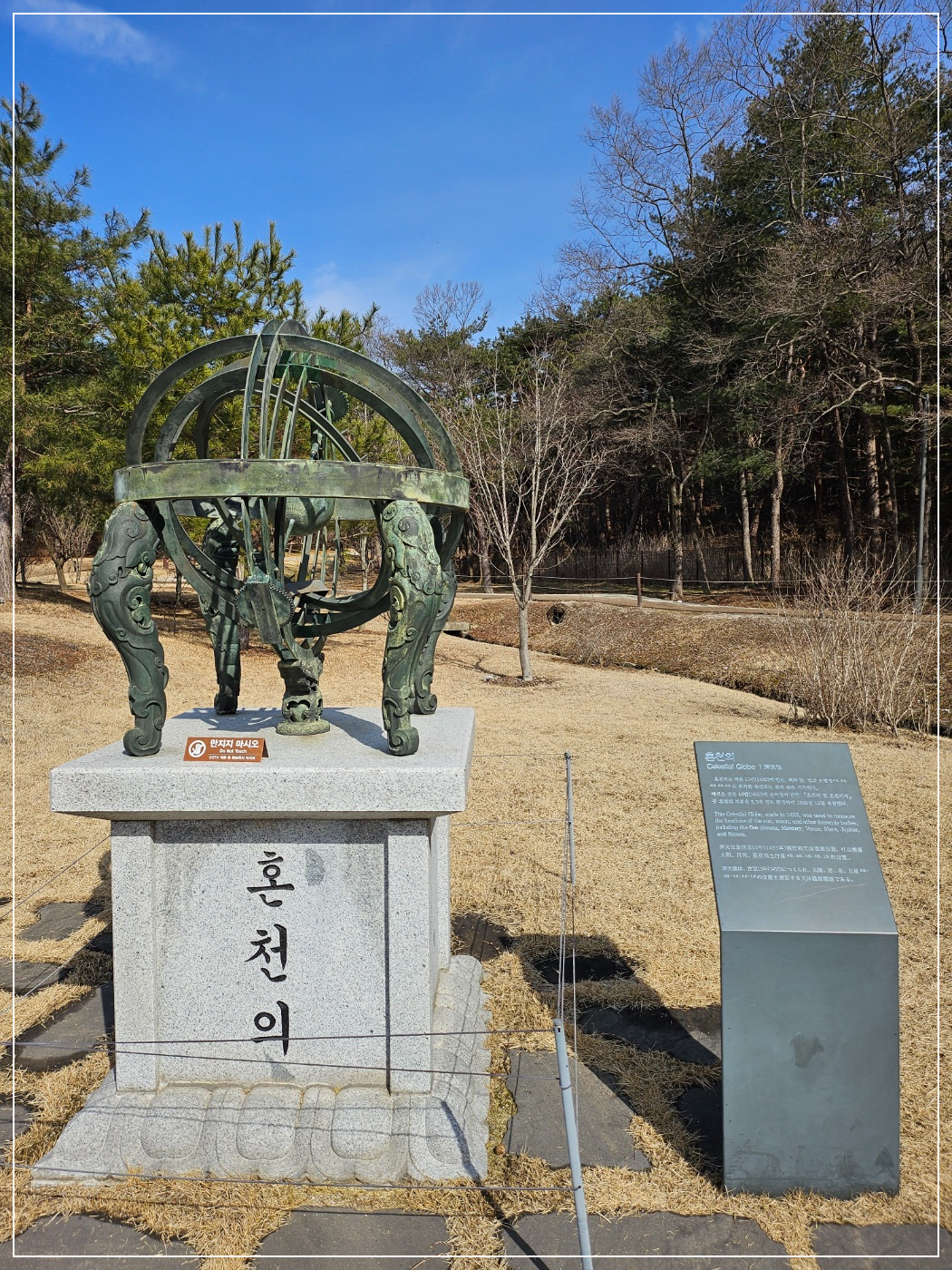 여러가지의 관측기기와 세종대왕의 동상을 가까이보면서 한글의 창제에 대해 위대함을 느낄 수 있었습니다.