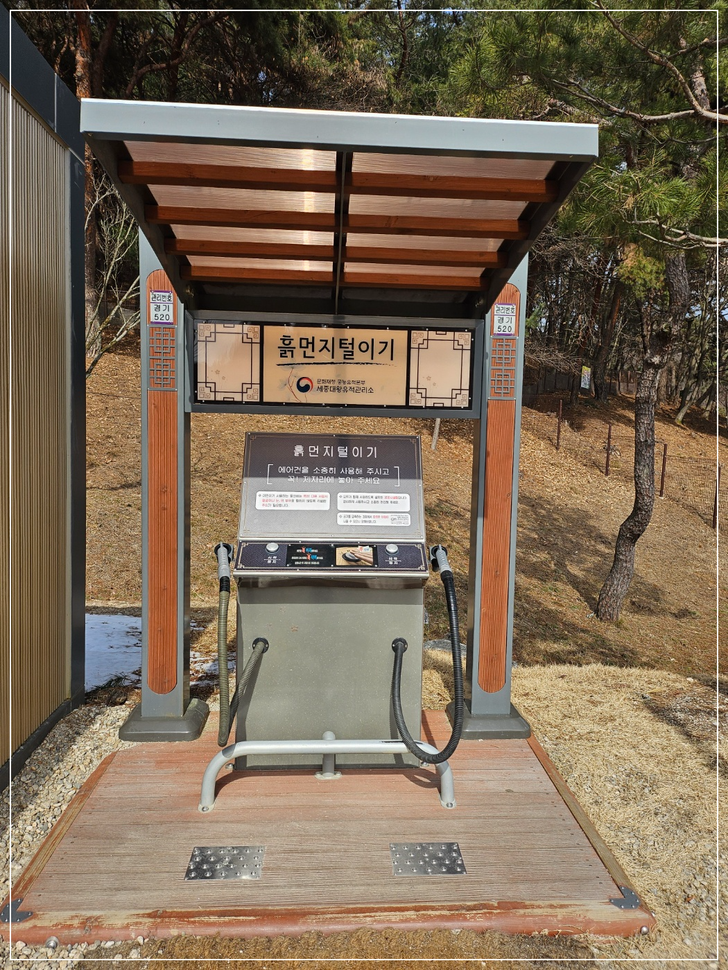 흙먼지 털이기로 열심히 털어주고 깔끔한 모습으로 나올 수 있었습니다.
