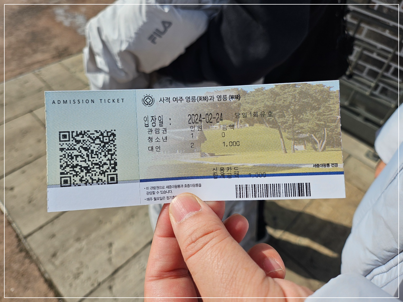 24세 이하는 무료, 성인2명 + 초딩 1명이라 = 1,000원 결제