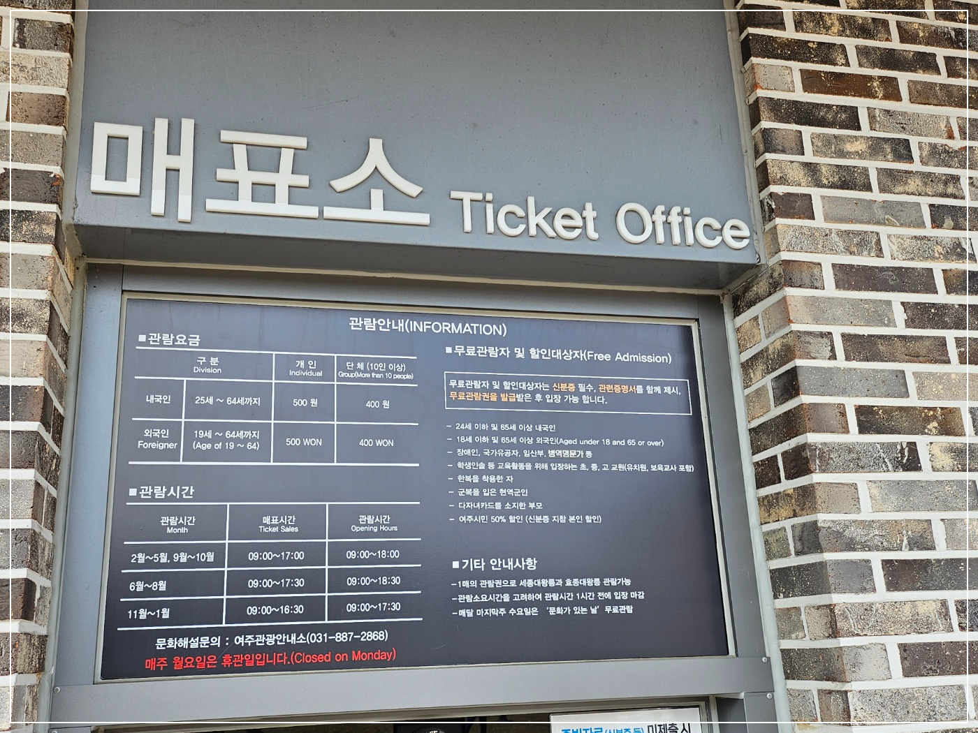 - 화요일 ~ 일요일 : 오전 9시 ~ 오후 6시