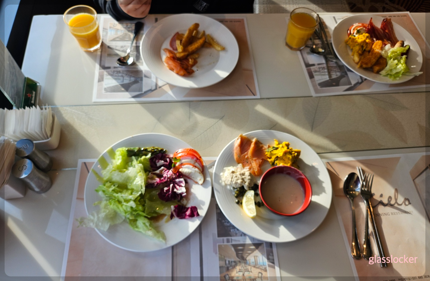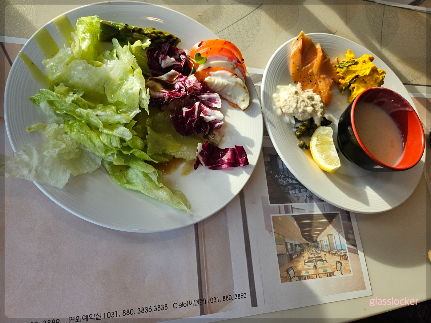 토요일 9시정도 조식 먹으러 갔는데, 빈자리가 많아서 사람이 없는쪽으로 자리를 잡음.