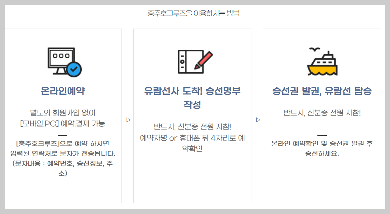 단양의 장회와 제천의 청풍호를 왕복하는 90분간의 운항 구간은 청풍호 일대의 수려한 경관, 구담봉, 옥순봉 등 우리 국토의 아름다움과 소중한 자연환경을 피부로 느끼면서 힐링할 수 있을 것입니다.