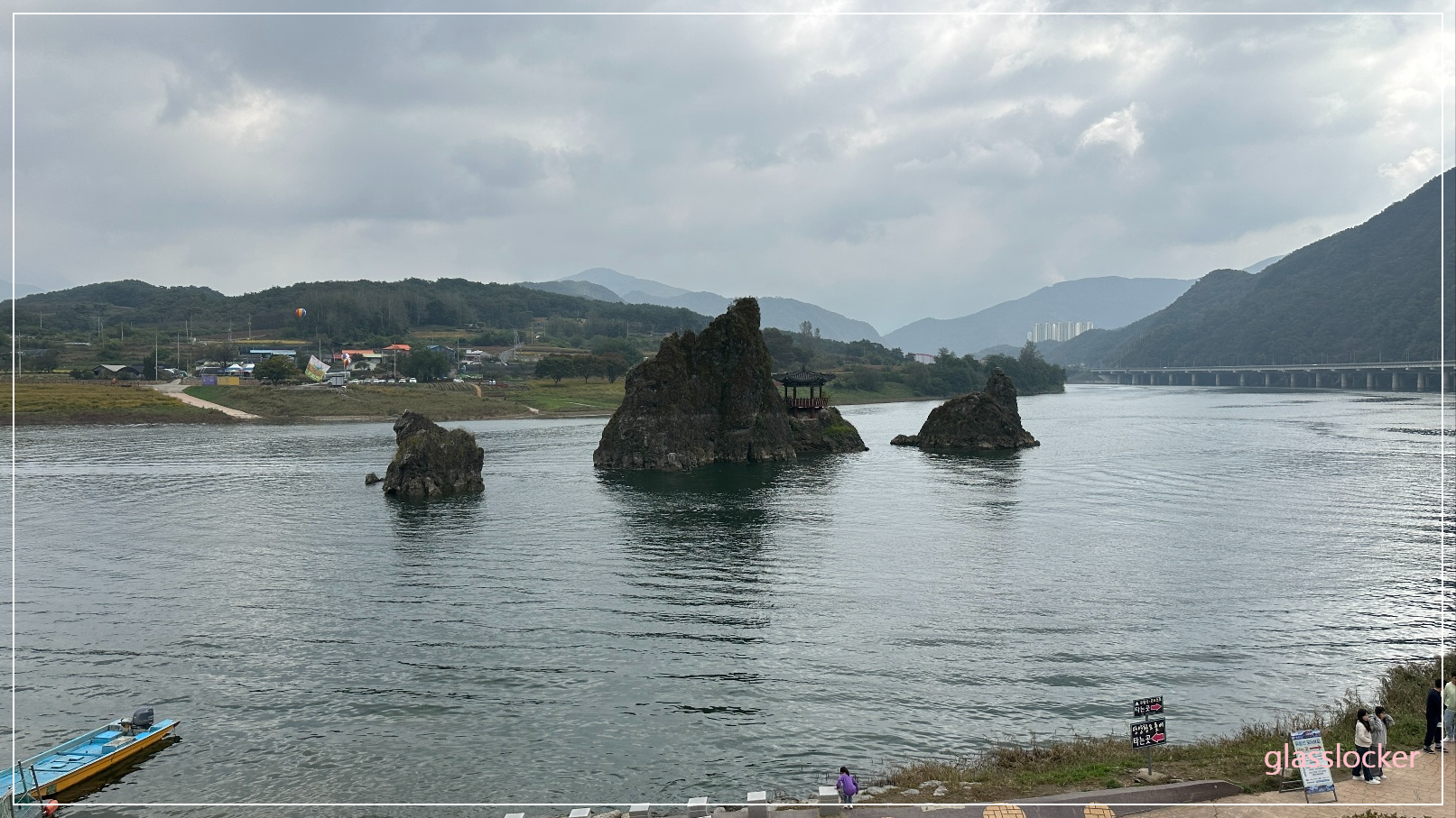 단양팔경의 하나로, 남한강 상류 한가운데에 3개의 기암으로 이루어진 섬을 말합니다.
