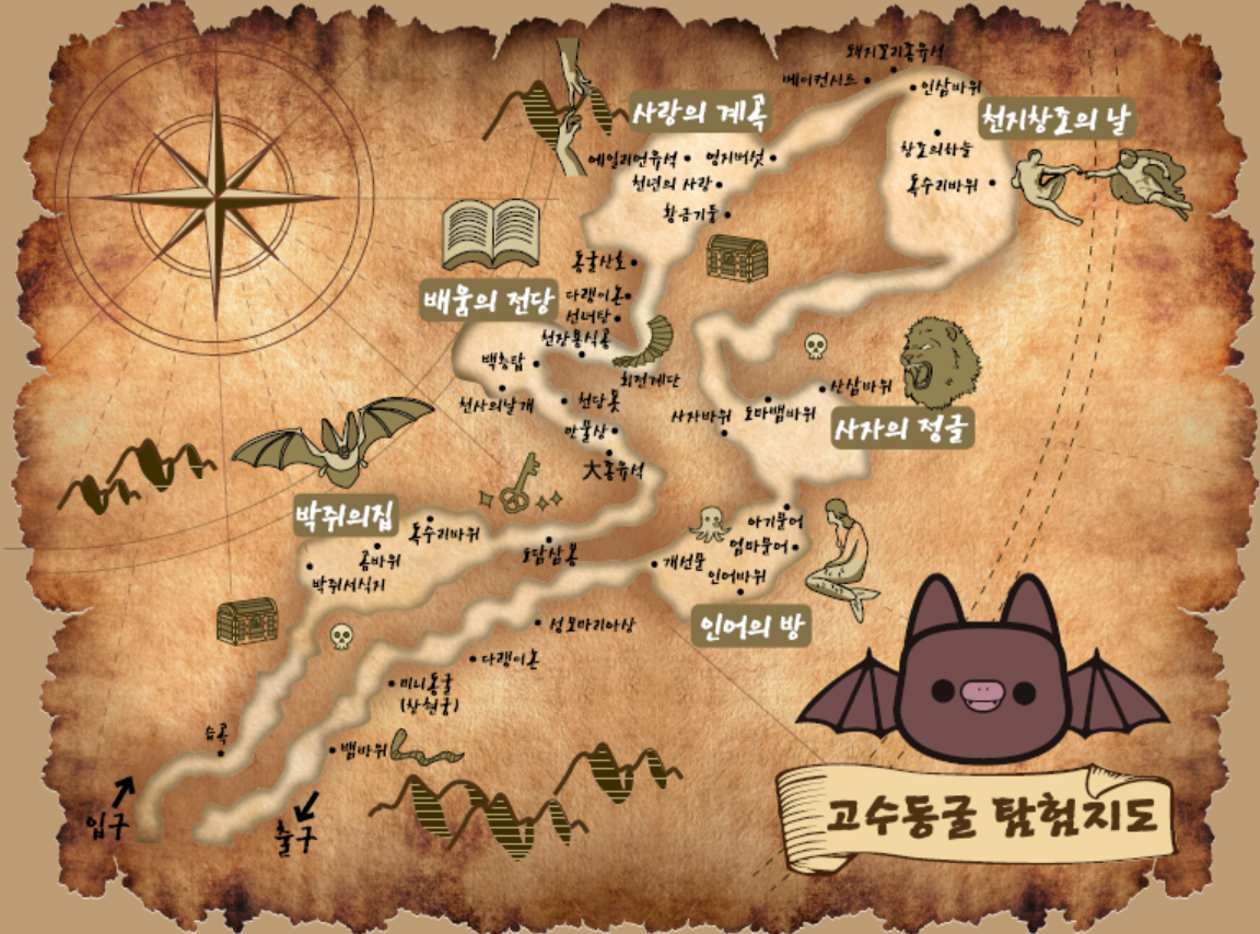 고수동굴은 천연기념물로 지정되어 있으며, 주굴과 지굴 등 크게 3층 구조로 이루어져 있습니다.