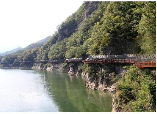 총 길이 1.12km의 단양강 잔도길에는 그동안 접근하기 어려웠던 남한강 암벽을 따라 잔도가 있어 트래킹의 낭만과 짜릿한 스릴을 온몸으로 체험 할 수 있습니다. 단양강 잔도는 남한강 풍경을 한눈에 조망할 수 있어 해외 유명 관광지에서 볼 수 있던 잔도의 한국판으로 보입니다. 인근의 이끼터널, 만천하 스카이워크, 수양개선사유물전시관, 수양개 빛터널 같은 볼거리도 조성되어 관광, 지질, 역사를 아우르는 체험을 제공하고 있습니다.