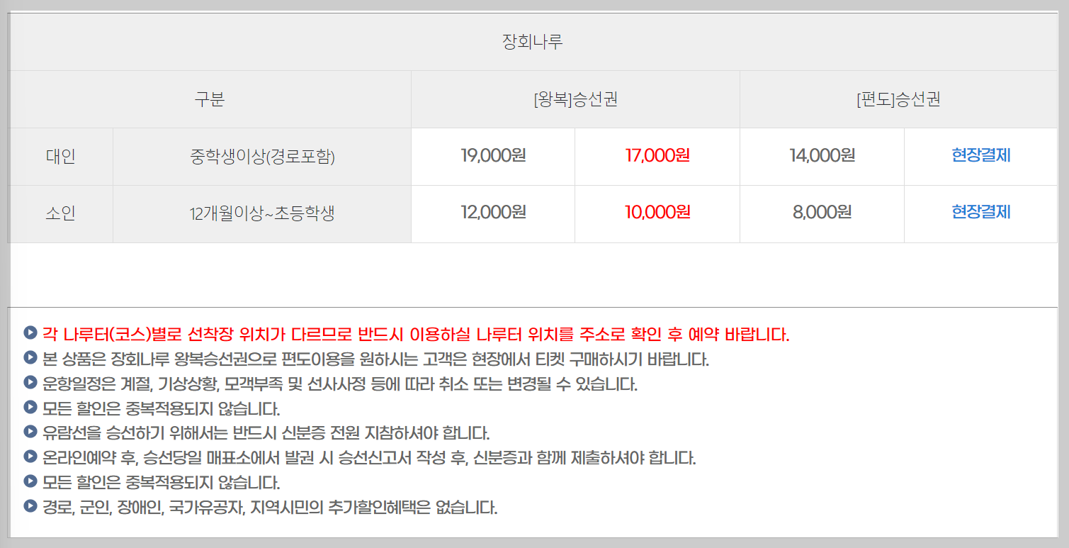 - 경로(만65세이상), 장애인, 국가유공자 할인 - 5,500