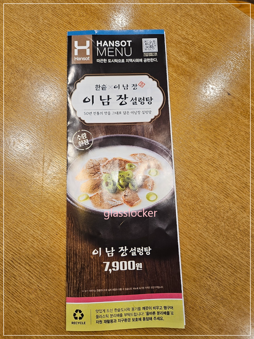 1. 이남장 설렁탕 - 50년 전통의 맛을 그대로 담은, 깊은 육수와 두툼한 고기가 들어감 (+대파,흑후추,미니깍두기)